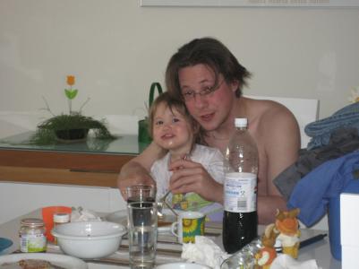 heute bin ich den ganzen Tag fast nackig rumgerannt, weil es so schön warm ist!!! Mama und Papa hatten die Balkontüren auf und ich habe ganz viel mit Papa auf dem Balkon gespielt. Mama war alleine einkaufen und ich hatte gaaaannnnz viel Zeit mit Papa. Mama hat mir eine Hupe für mein Dreirad und ein Baggerauto für die Buddelkiste mitgebracht! Dann habe ich 2 Stunden Mittagsschlaf gemacht und dann erst Mittag gegessen - es gab Kartoffelpuffer. Erst wollte ich nciht essen, weil ich noch so müde war, aber dann hat mich Papa auf den Schoß genommen und dann hat es geschmeckt!
